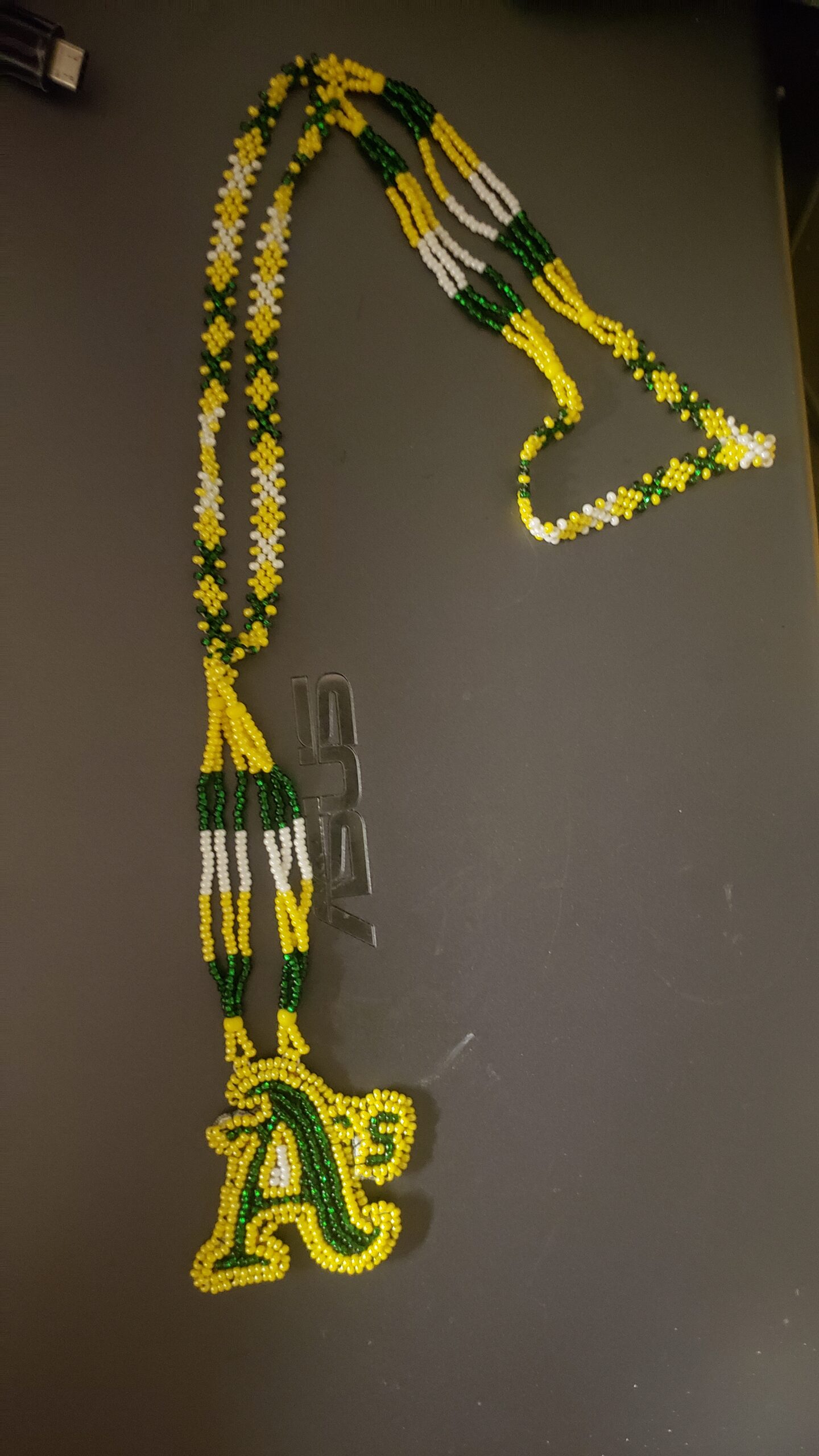 The beads used to make handmade A’s logos can vary depending on the artist’s preference. Some popular choices include glass beads, seed beads, and metal beads. The colors of the beads can also vary, but they are typically chosen to match the team’s colors of green, gold, and white.