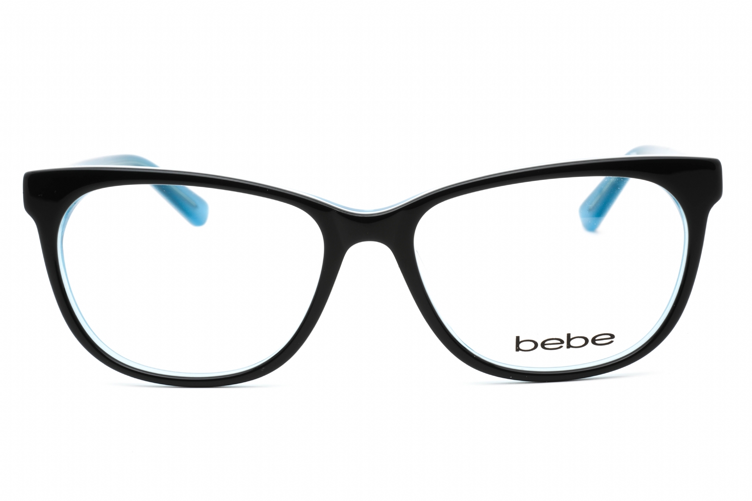 Bebe BB5108 Popular Eyeglasses are designed for women and feature spring hinges and skull temples. They have a round shape, 135 mm long temples, 53 mm wide lenses, and 16 mm bridge width. These eyeglasses are made with plastic frames and polarized lenses, and are prescription style.Â