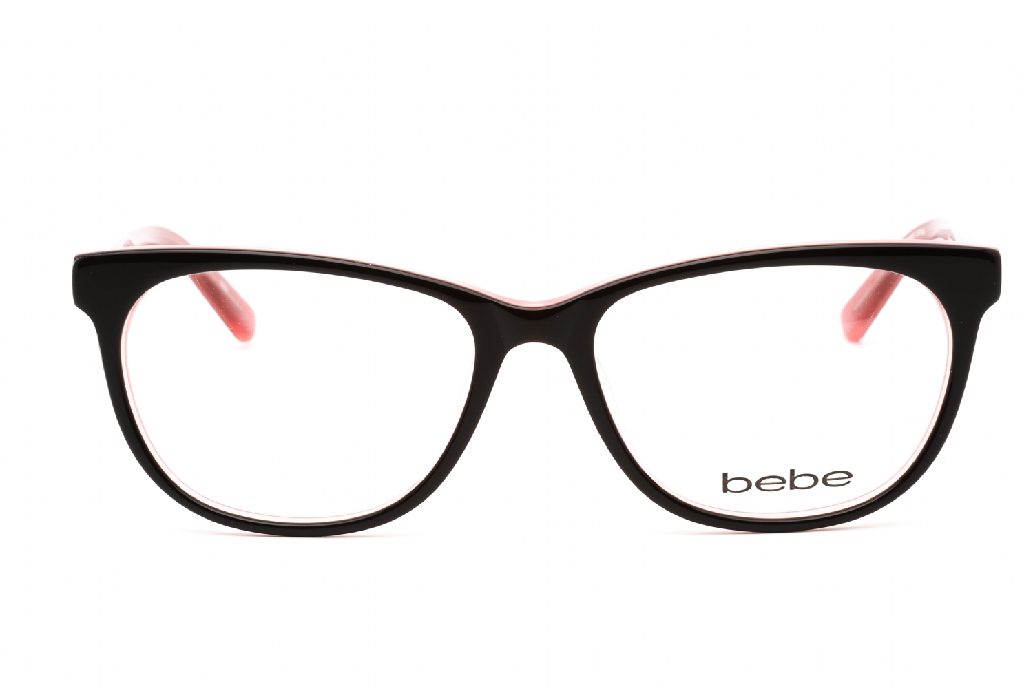 Bebe BB5108 Popular Eyeglasses are designed for women and feature spring hinges and skull temples. They have a round shape, 135 mm long temples, 53 mm wide lenses, and 16 mm bridge width. These eyeglasses are made with plastic frames and polarized lenses, and are prescription style.Â