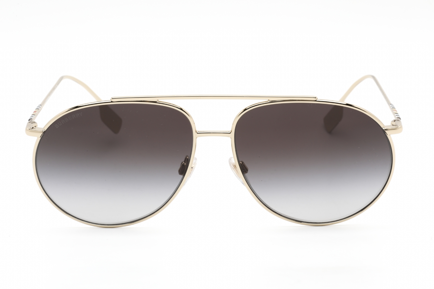 The Burberry BE3138, also known as the Alice sunglasses, is a pair of women’s aviator sunglasses crafted from metal in a light gold-tone finish. It features a classic aviator silhouette, self-adjusting nose pads for comfort, and a double-bridge construction for a touch of sophistication
