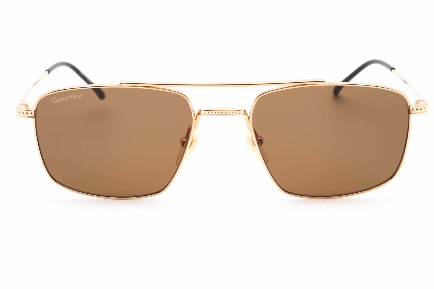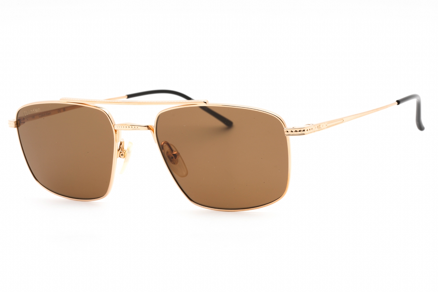 • Calvin Klein CK22111TS sunglasses are men’s sunglasses with a gold metal frame and a full rim aviator shape. They feature adjustable nose pads for a more secure and comfortable fit, and have cr39 brown lenses. These sunglasses measure 56mm lens width, 19mm bridge size, and 145mm temple size.