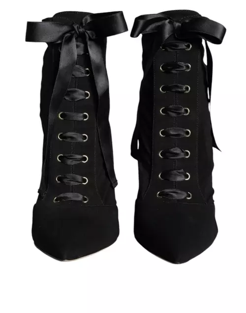 Introducing the Dolce & Gabbana Black Jersey Stretch Ankle Booties, a perfect blend of elegance and modern design. Crafted from high-quality stretchy jersey fabric, these booties mold to your foot for a comfortable, customized fit. The sleek silhouette and minimalist aesthetic make them an ideal choice for both day and night outfits. With a stylish pointed toe and a chic ankle height, these booties add a sophisticated edge to any ensemble.