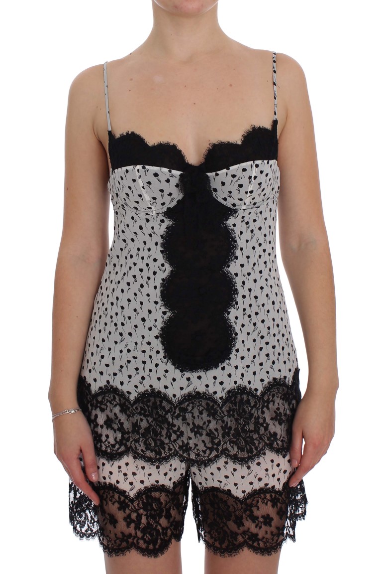 Embrace the essence of femininity with this exquisite Dolce & Gabbana black and white floral print and lace silk stretch chemise. This luxurious lingerie piece combines elegance and comfort with its delicate lace details and silky texture, perfect for those special occasions or as a lavish treat to yourself. The chic design features a convenient back zipper opening and adjustable shoulder straps for a perfect fit. Crafted in Italy, it’s a true representation of high-end fashion and craftsmanship.