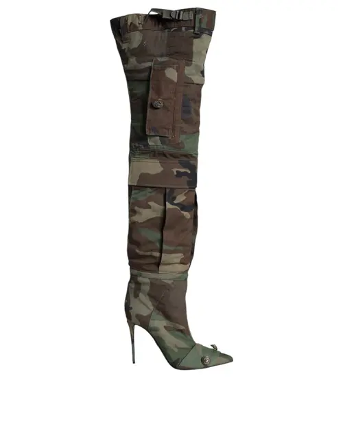Make a bold statement with the Dolce & Gabbana Multicolor Camouflage Knee High Heels Boots. These eye-catching boots are designed to stand out, featuring a unique camouflage print that adds a contemporary twist to your footwear collection. Crafted from high-quality materials, they combine style with comfort, offering a sleek silhouette that enhances your legs. The elegant knee-high design and stylish stiletto heel provide a touch of sophistication, making them perfect for both day and night looks.