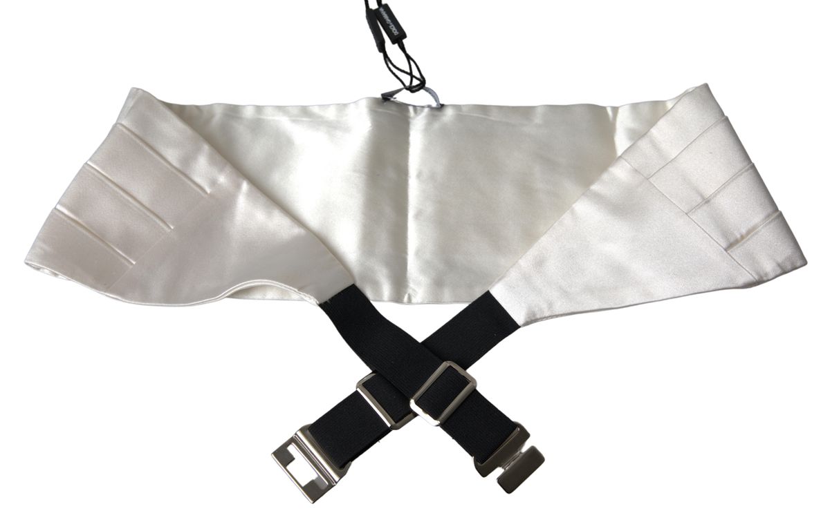 Exude sophistication and grace with this 100% Authentic Dolce & GabbanaExclusive Silk Cummerbund. Perfect for any formal occasion, this exquisite piece complements your tuxedo ensemble with an impeccable touch of luxury. Its adjustable hook clip closure and stretch band ensure a comfortable and secure fit, as you make a statement in timeless style.