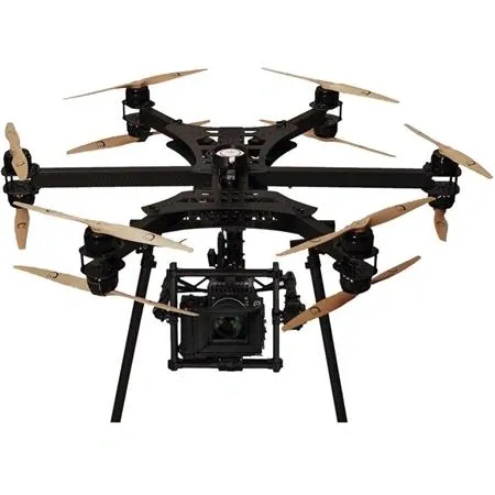 Optimized for DSLRs, mirrorless cameras, and compact cinema cameras, the included gimbal will support payloads of up to 8 lb. Driven by three brushless motors, the gimbal provides camera stabilization and helps compensate for unwanted motion such as wind buffeting the multi-rotor. Additionally, the gimbal enables the camera to be moved independently of the aircraft – a second transmitter is included for dedicated gimbal operation