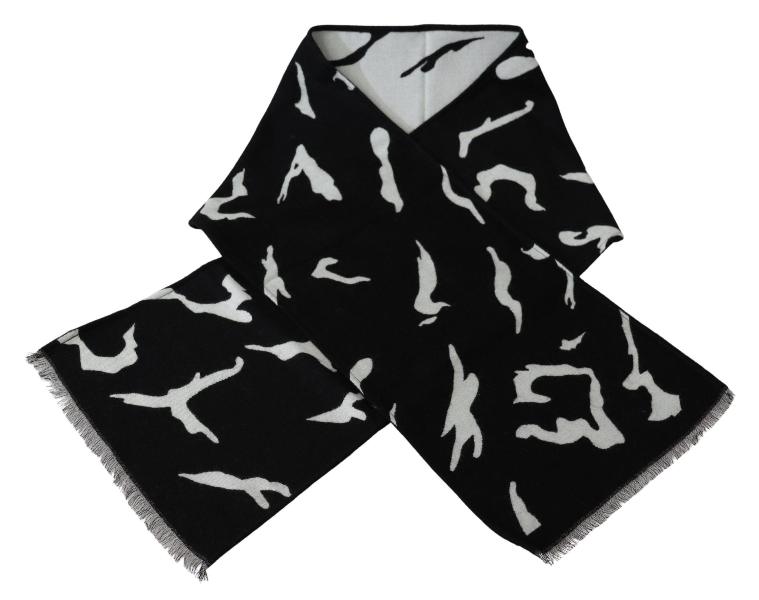 Wool-Silk Scarf Black and Whit