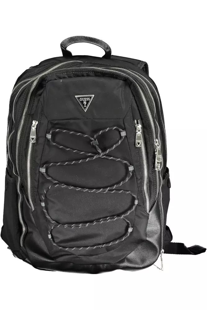 Elevate your on-the-go essentials with this sleek backpack from Guess Jeans, designed for the urban adventurer. Delivering both style and function, it features one handle, adjustable shoulder straps for personalized comfort, and multiple pockets to keep your items organized. Stow your tech safely with a dedicated laptop space and expandable compartments. Detailed with contrasting accents and the iconic logo, this backpack is crafted from durable recycled nylon, making it a smart and eco-conscious choice for your daily commute or travel.