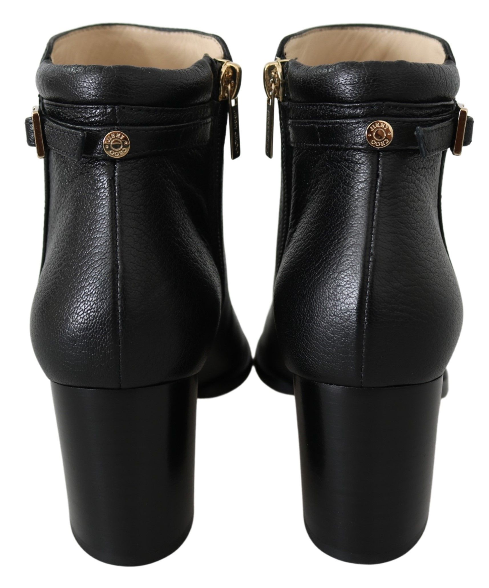 Gorgeous brand new with tags, dustbag, and original shoe box – step into luxury with these authentic Jimmy Choo heeled boots. Designed for sophistication and crafted for comfort, these boots are the perfect marriage of style and practicality. With a sleek black palette and practical zip closure, they’re an ideal choice for any fashion-forward individual.