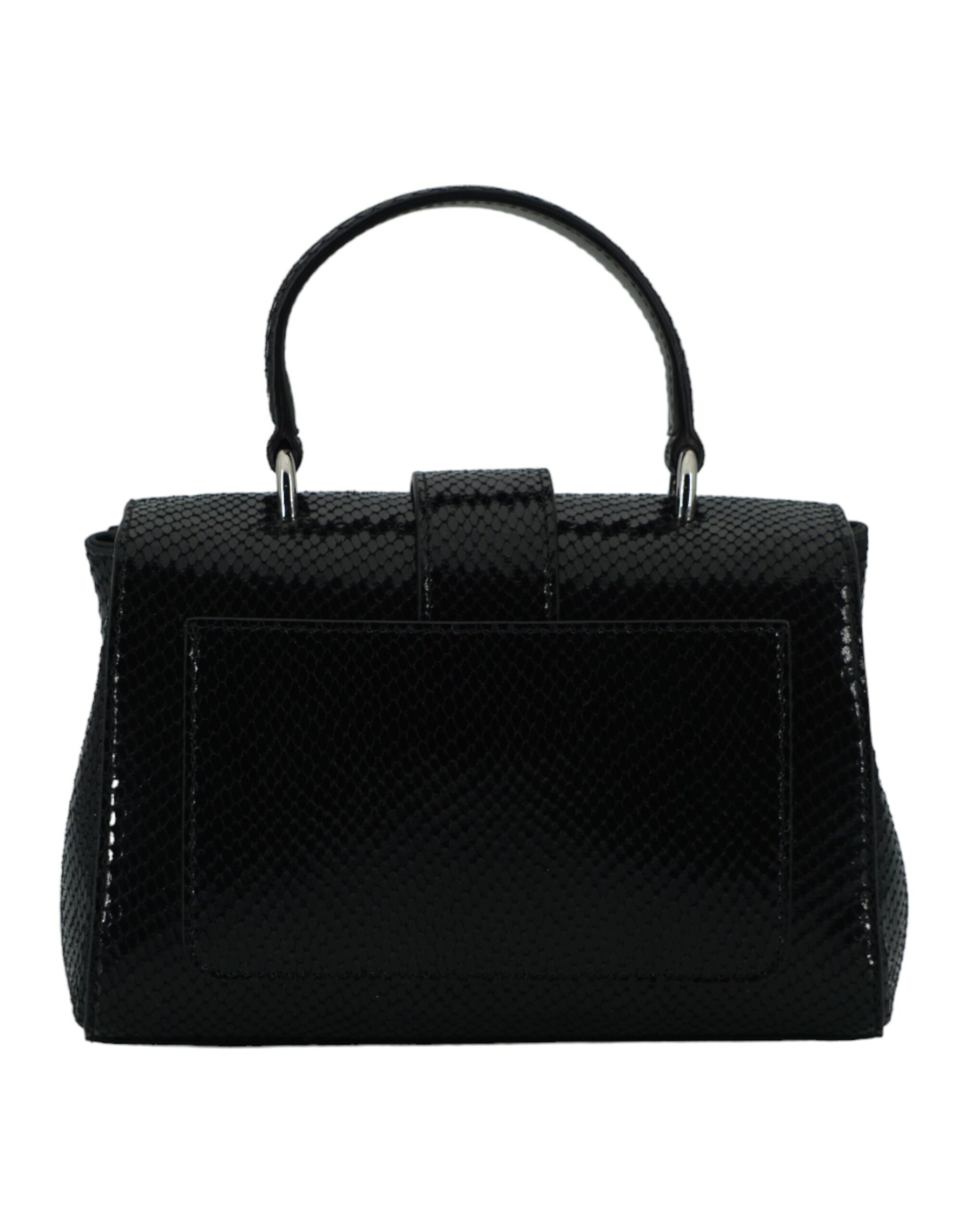 Details: Handbag realised in calf leather. With removable leather shoulder strap and magnetic button closure under the flap. With Cristal detailed hardware. Three main compartments and internal zip pocket.
