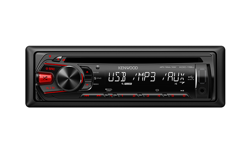 The Kenwood KDC168 is a CD receiver with a USB input and front auxiliary input, allowing you to connect a variety of music sources. It features a detachable face for security and a 3-band EQ to customize your listening experience. The red and white color illumination provides a stylish look.