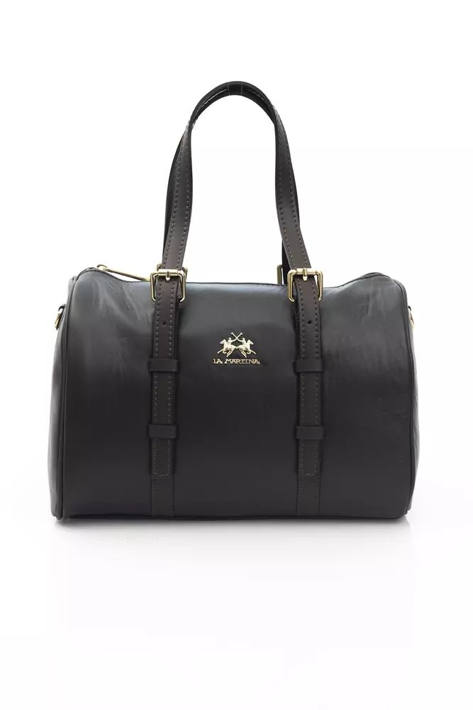 Discover sophistication with La Martina’s sleek Black Leather Crossbody Bag, perfect for the modern individual on-the-go. This meticulously crafted accessory features a secure zip closure, structured internal compartments for your essentials, and a logoed lining that speaks to the brand’s attention to detail. Adorned with a prominent front logo, this bag measures 32*22*7 cm, offering ample space in a refined silhouette.