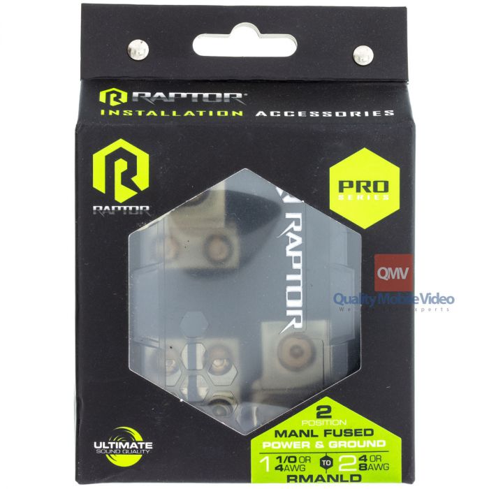 The Raptor RMANLD Pro Series 2-Way MANL Fuse / Ground Distribution system is designed to provide reliable and efficient power management for your audio or electrical systems. It ensures secure connections and effective protection against power surges, enhancing the performance and safety of your setup.
