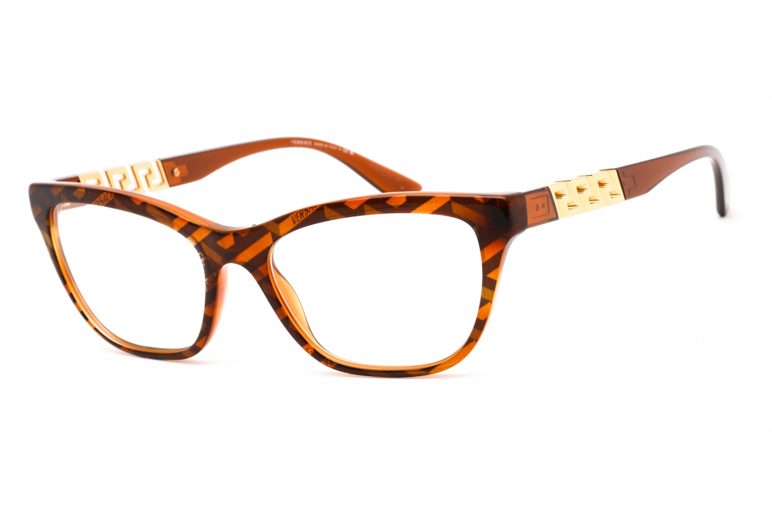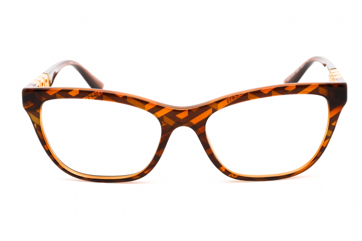 - Versace’s 0VE3318 eyeglasses. These classic cat-eye frames boast a luxurious acetate build in a sophisticated havana color.